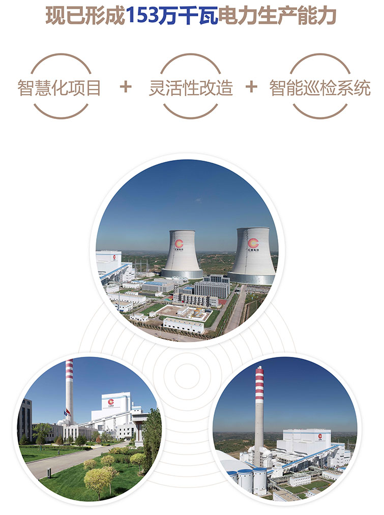集團(tuán)共有3座電廠,其中2座建成運行,1座正在建設(shè)。2006年,蒙南發(fā)電公司2×6萬千瓦供熱機(jī)組建成投產(chǎn)。2023年,匯能長灘2×66萬千瓦超超臨界燃煤發(fā)電項目并網(wǎng)發(fā)電,屬于蒙西至天津南特高壓輸電通道的配套電源點之一,長灘電廠二期工程2×66萬千瓦發(fā)電項目正在建設(shè),屆時電力總裝機(jī)將達(dá)到285萬千瓦。